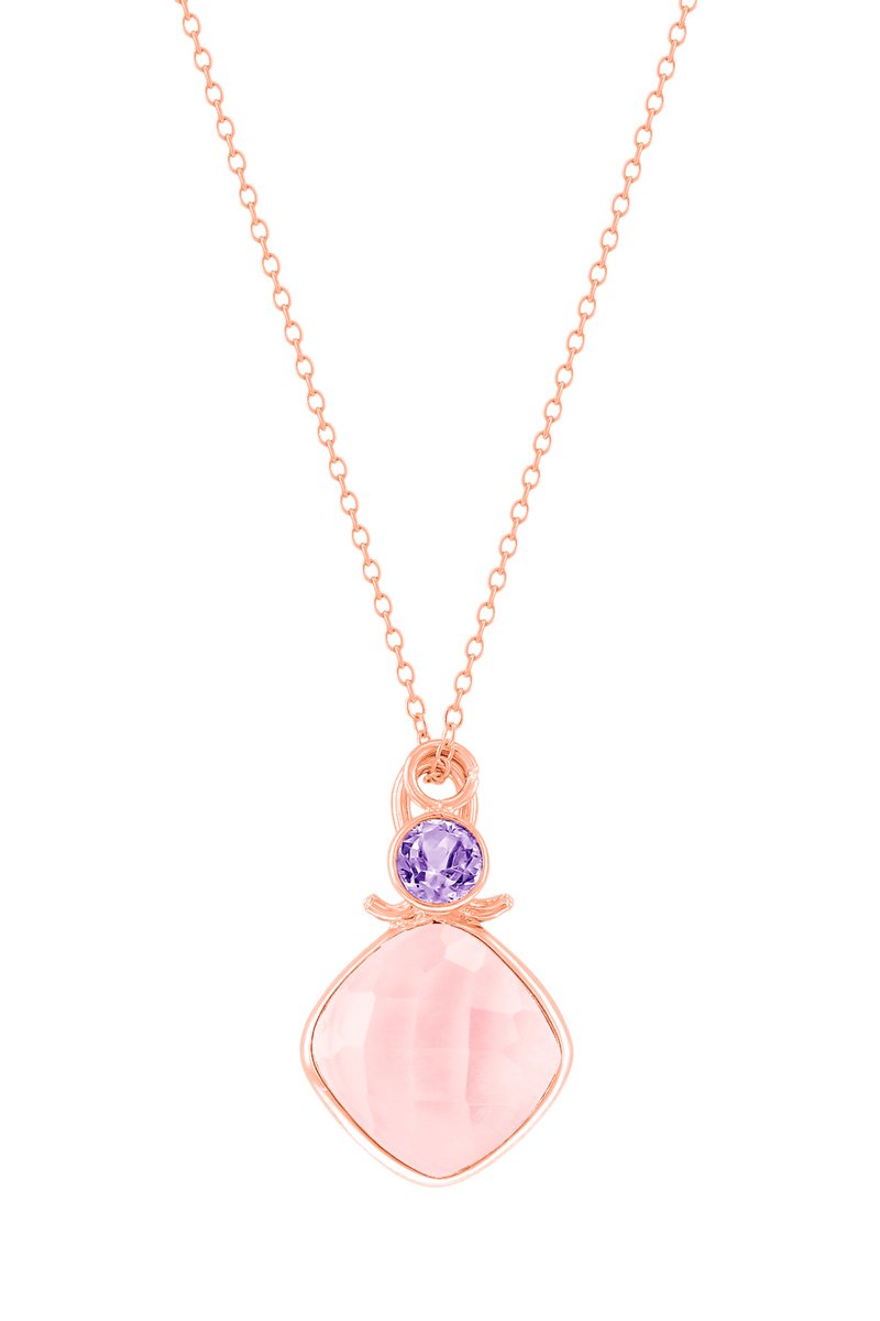 Collier - Argent plaqué or rose, quartz rose et améthyste