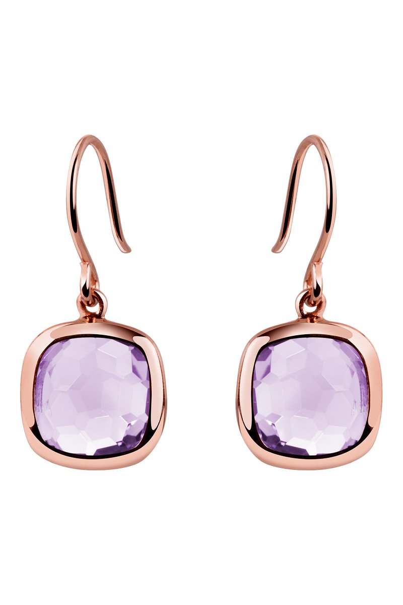 Boucles d'oreilles en argent plaqué or rose sertie d'une améthyste.