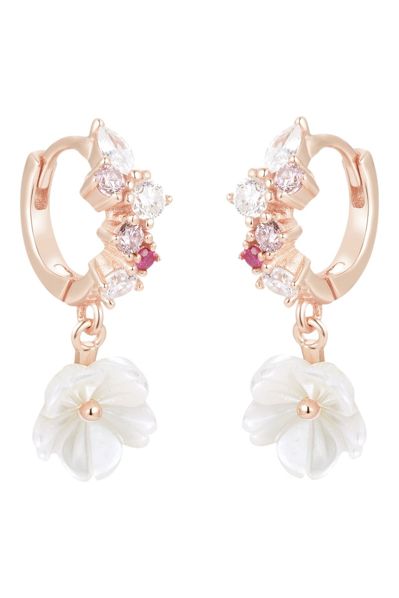 Boucles d'oreilles en argent plaqué or rose serties de nacre et de zirconiums.