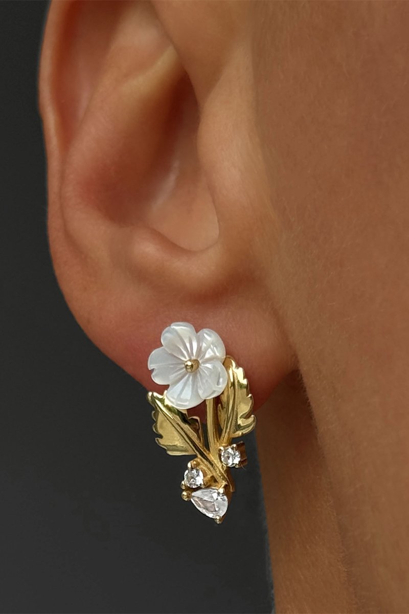 Boucles d'oreilles en argent plaqué or jaune serties de nacre et de zirconiums.