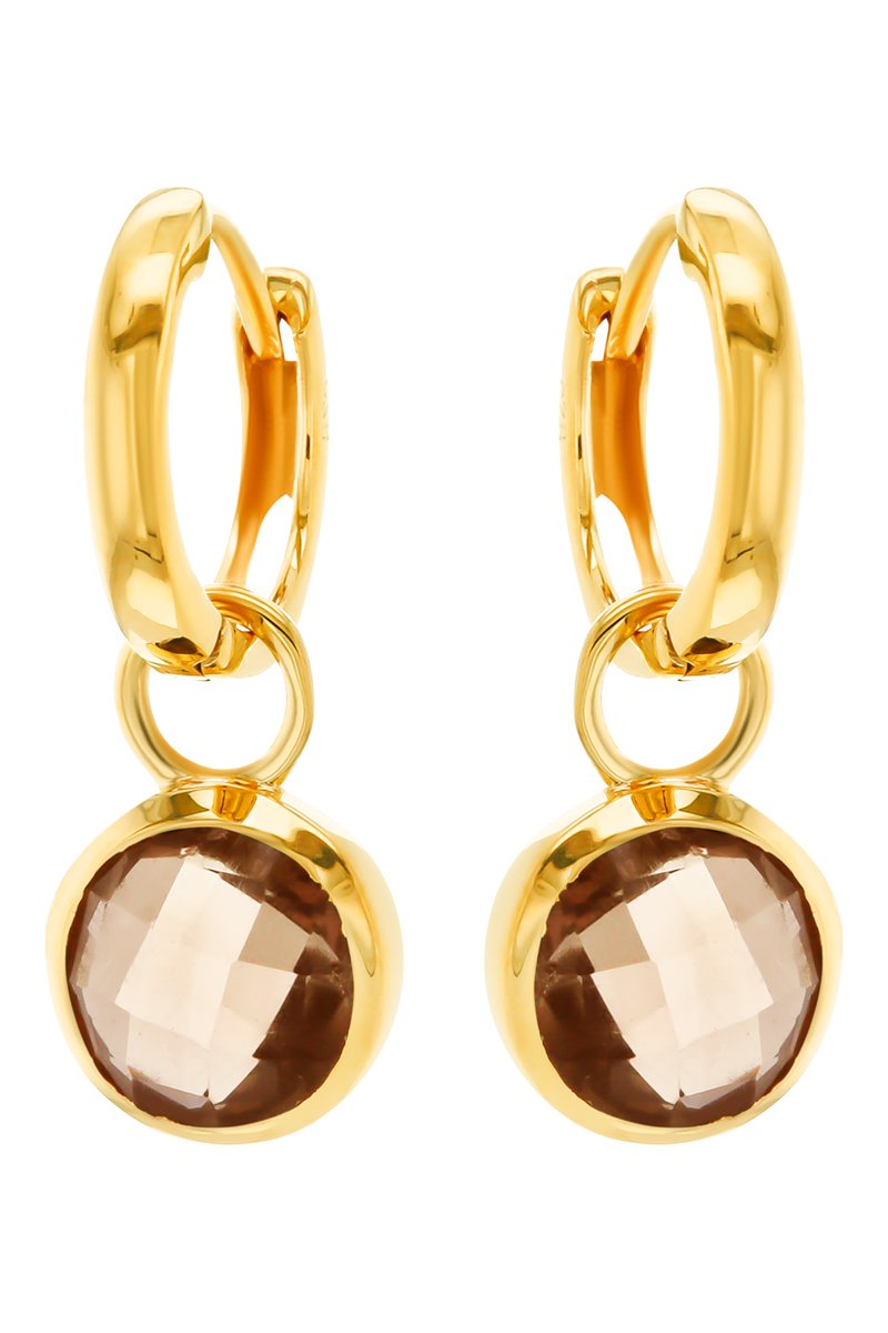 Boucles d'oreilles - Argent plaqué or jaune, quartz fumé et zircons