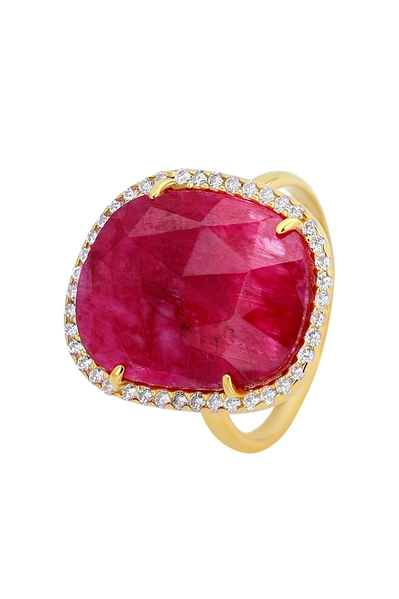 Bague en argent plaqué or jaune sertie d'une cyanite et de zirconiums.