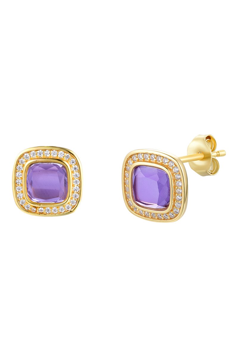 Puces en argent plaqué or jaune serties d'une améthyste et de zirconiums.