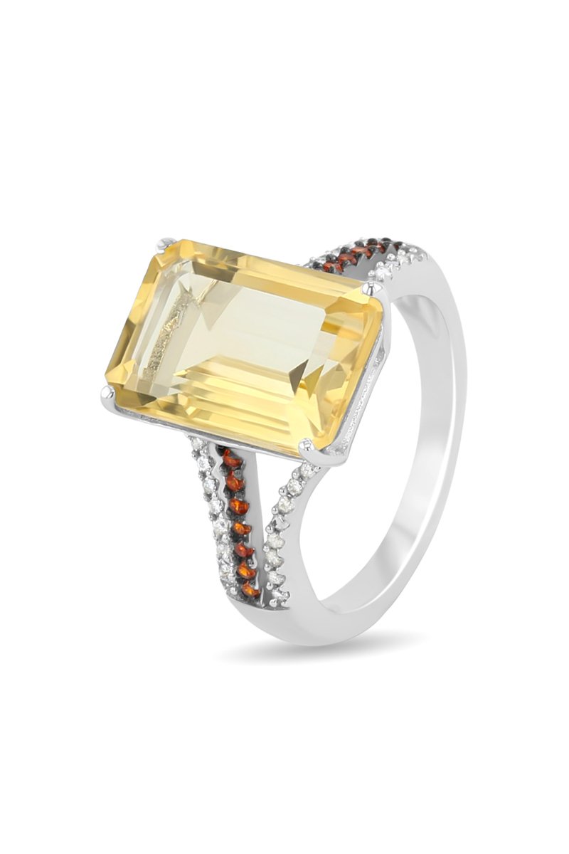 Bague en argent plaqué rhodium sertie d'une citrine.