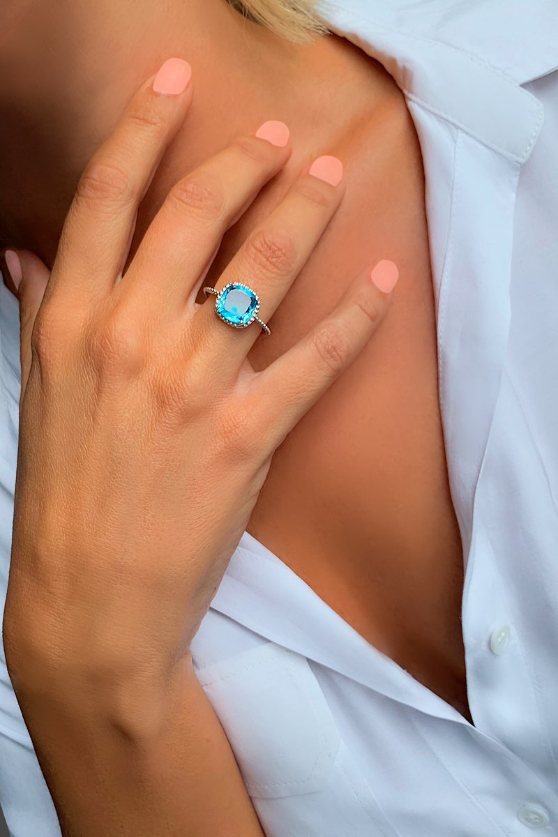 Matière : argent 925/1000 plaqué rhodium et topaze