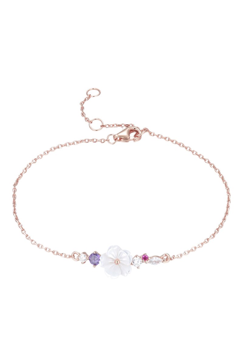 Bracelet en argent plaqué or rose sertie de nacre et de zirconiums.