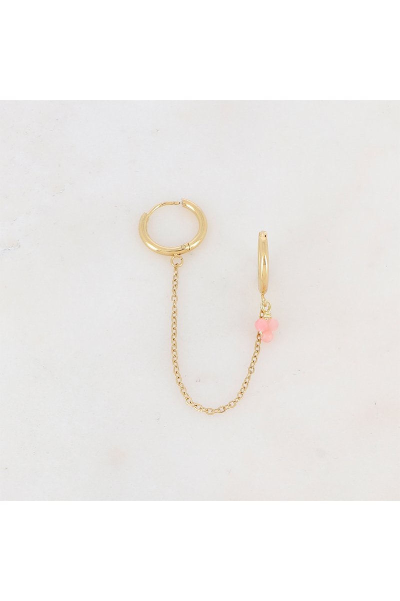 2 créoles reliées par une chaînette dont 1 sertie de 3 rhodonites.
