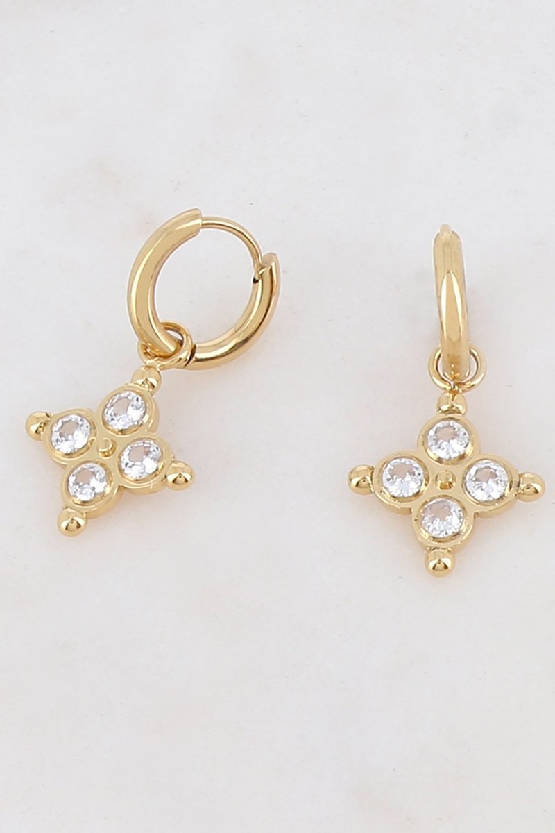 Boucles d’oreilles pendantes serties de 4 oxydes de zirconium.