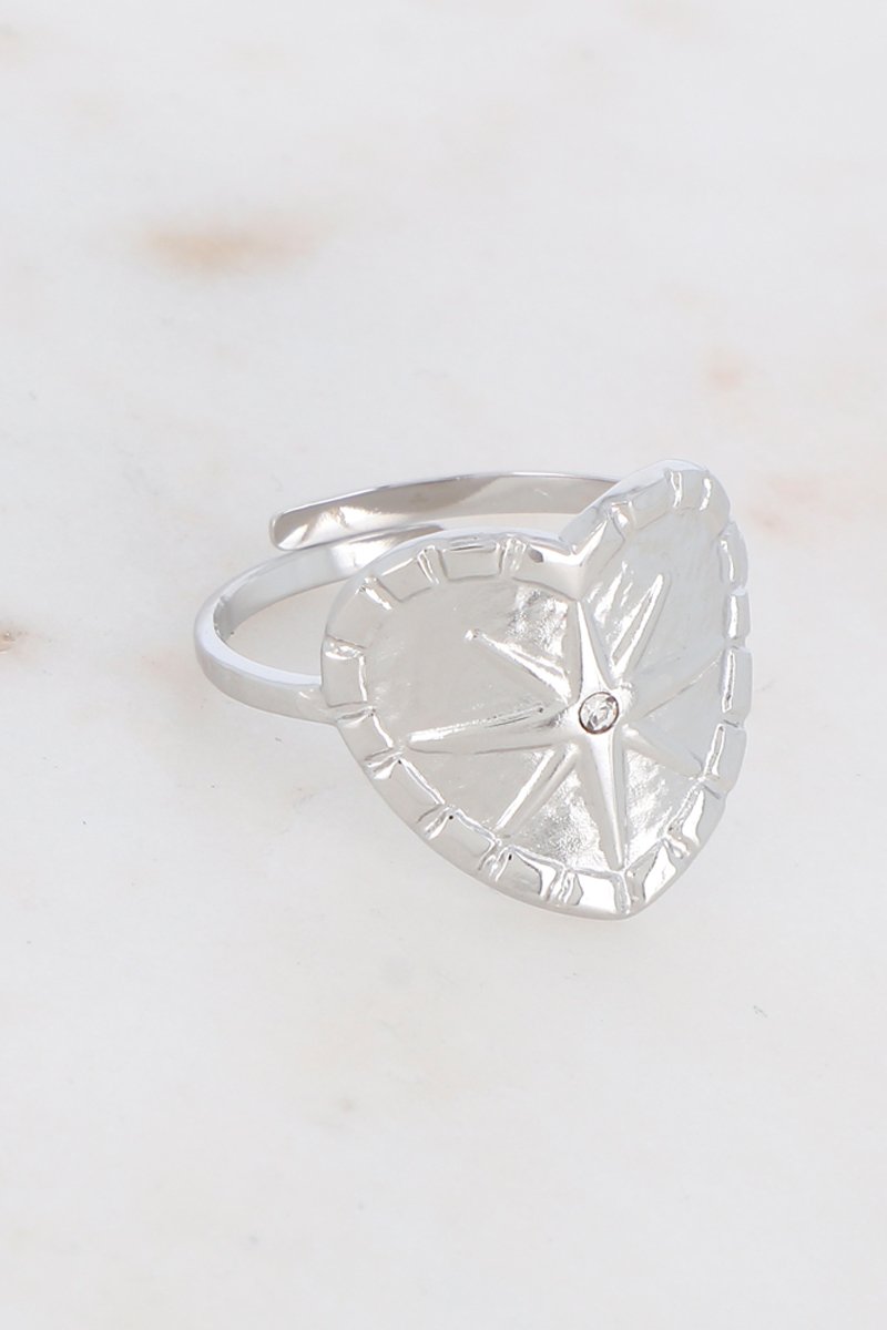 Bague ajustable avec un coeur orné d'une étoile et d'un strass.