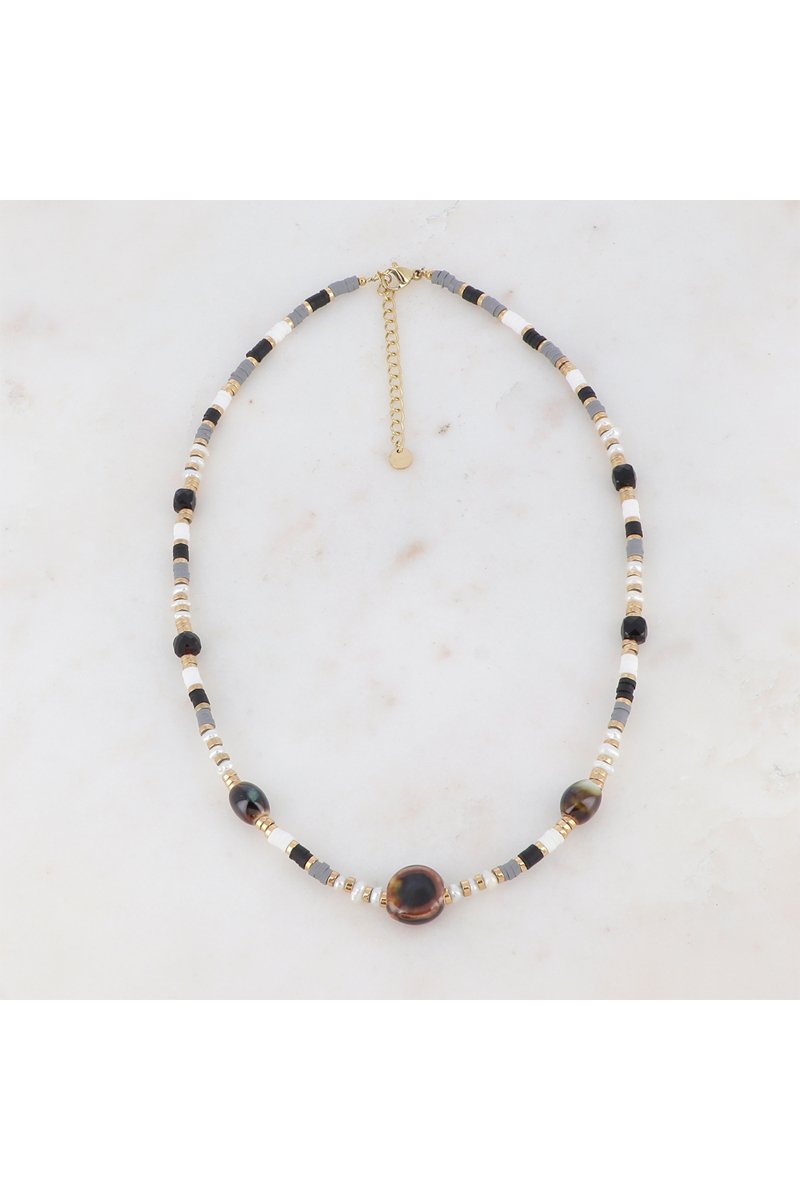 Collier - Céramique, perles d'eau douce et agates