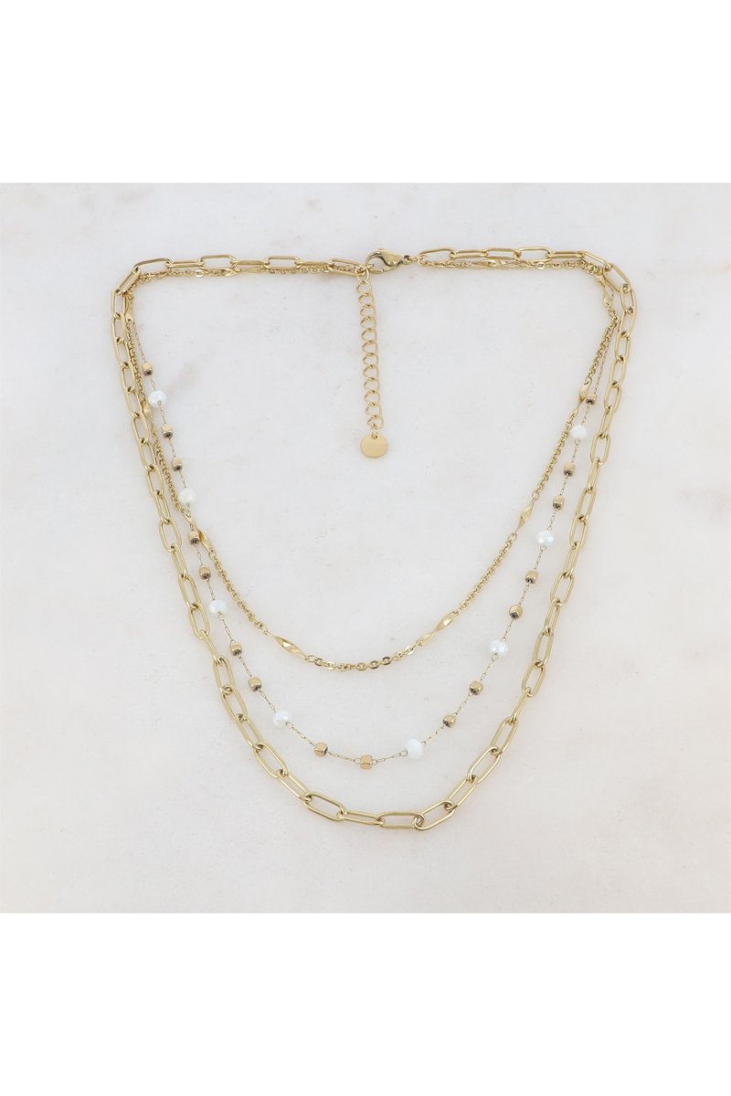 Collier triple rangs composé de maille et perles de pâte de verre.