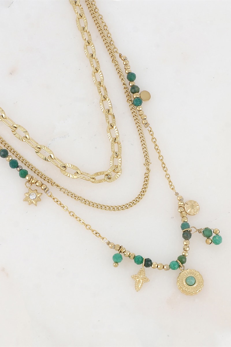Collier multirang serti de jaspes et de zirconium.