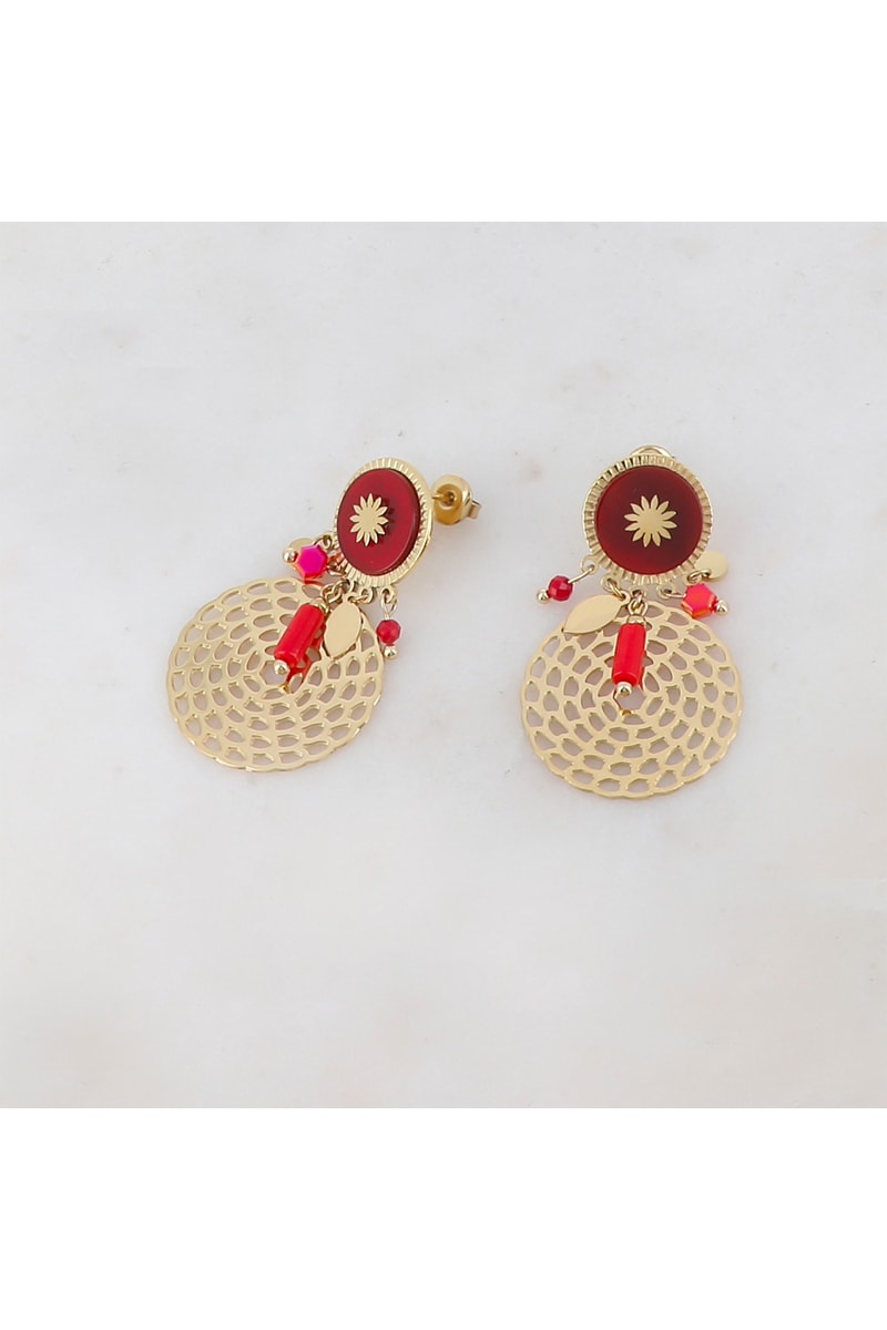 Puces pendantes serties de cornaline et de pâtes de verre.