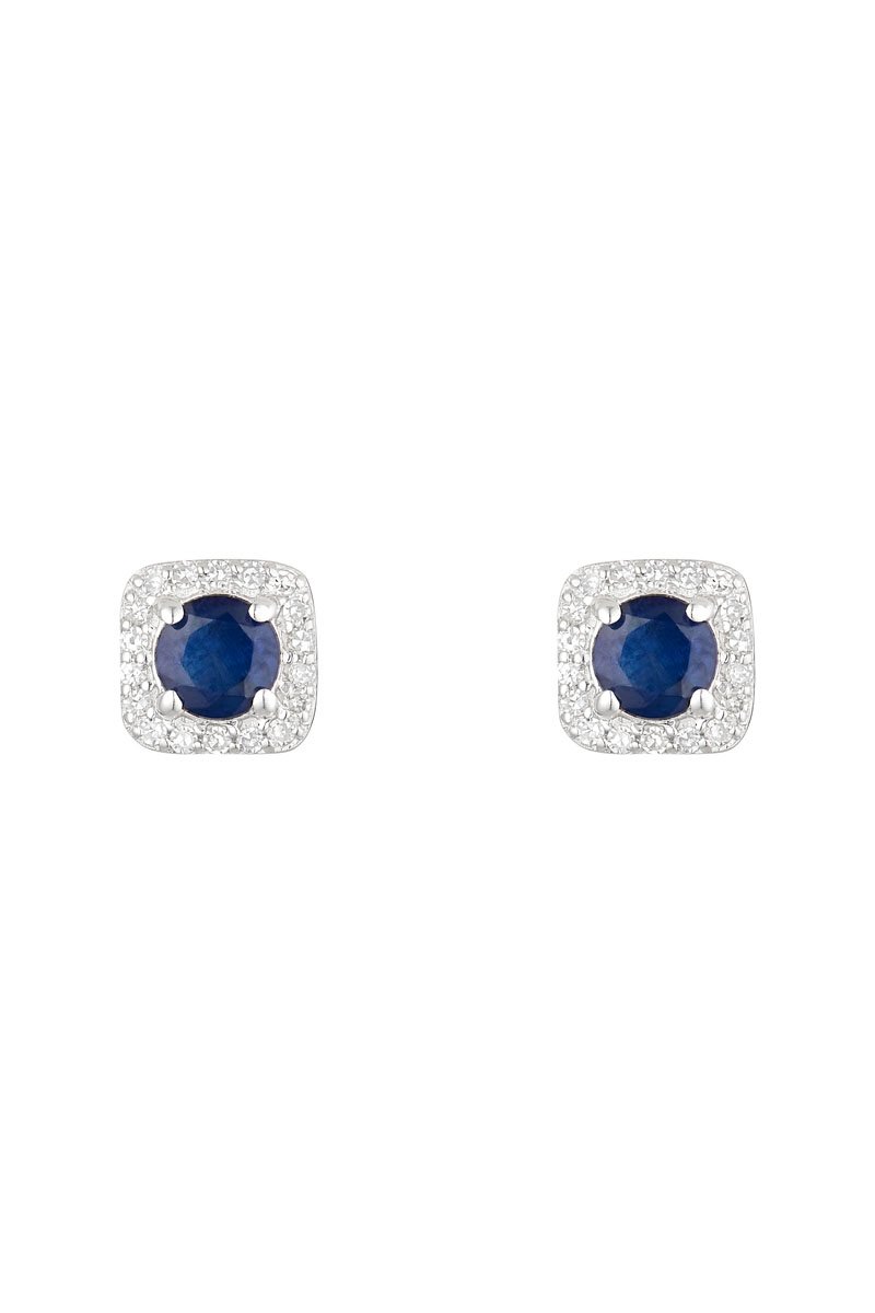 Puces Solitaire bleu - Or blanc, diamants et saphirs