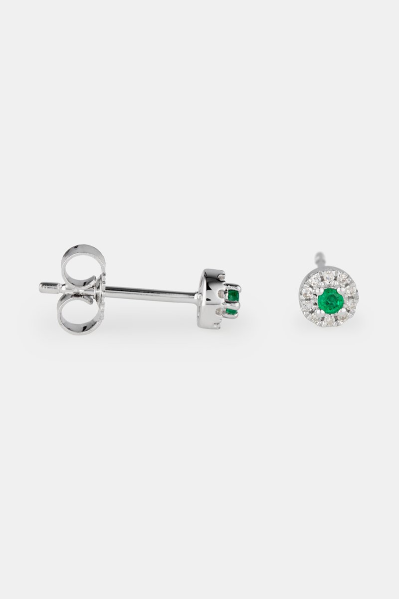 Matière : or blanc 375/1000, émeraude 0,12 carat/2 et diamants 0,06 carat/20