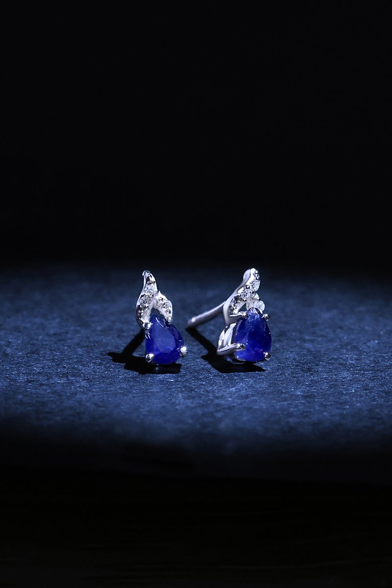 Puces Larme de Saphir - Or blanc, diamants et saphirs