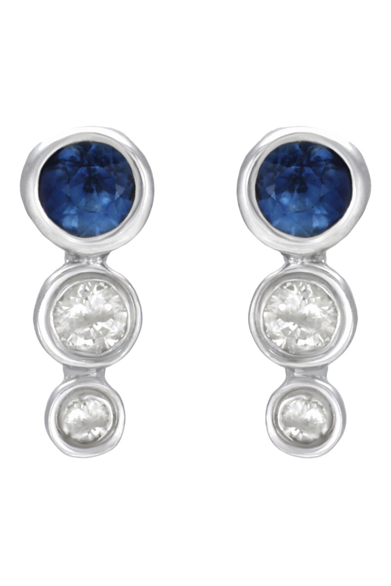 Boucles d'oreilles en or blanc serties de 2 diamants et d’un saphir.