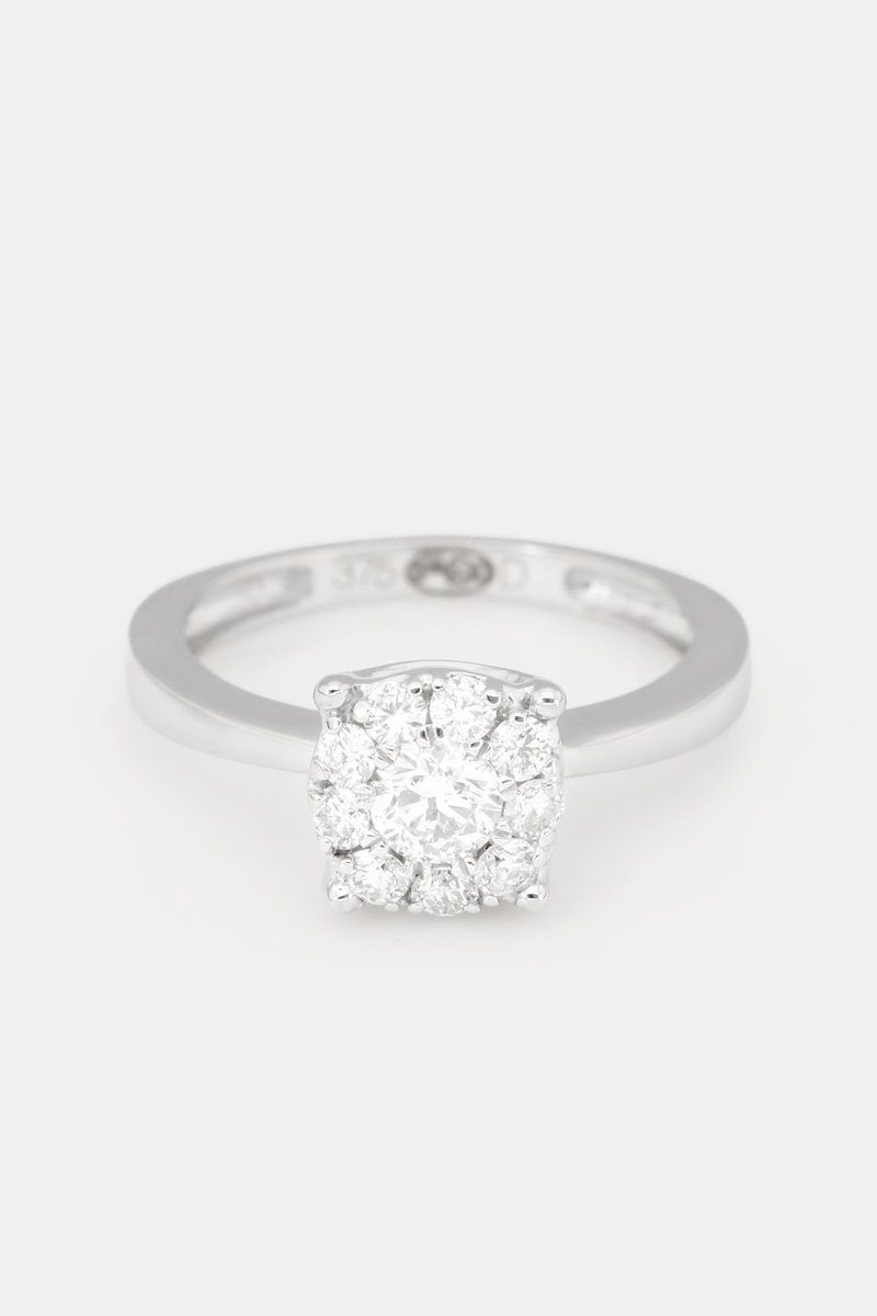 Solitaire en or blanc serti de 10 diamants dont un solitaire.