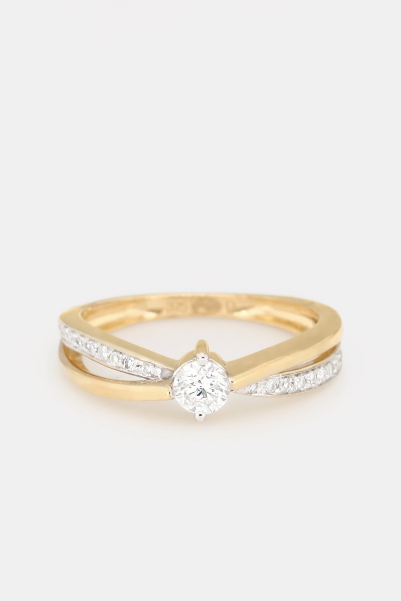 Bague en or jaune sertie de 19 diamants dont 1 solitaire.