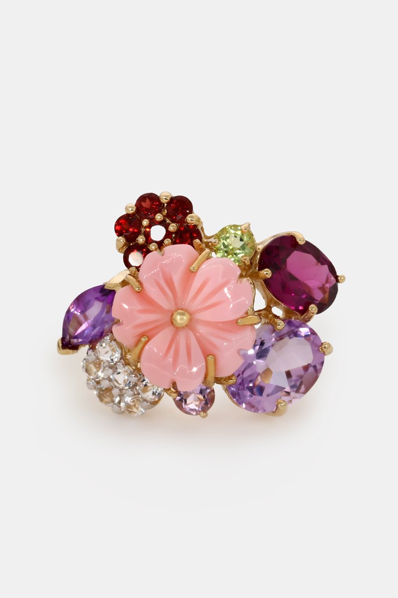 Bague Jardin anglais - Or jaune, topazes, grenats, améthystes, péridot, rhodolite et nacre