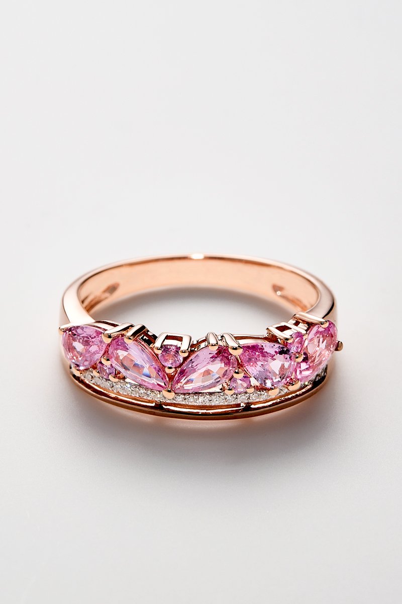 Bague en or rose sertie de 24 diamants et de 9 saphirs.