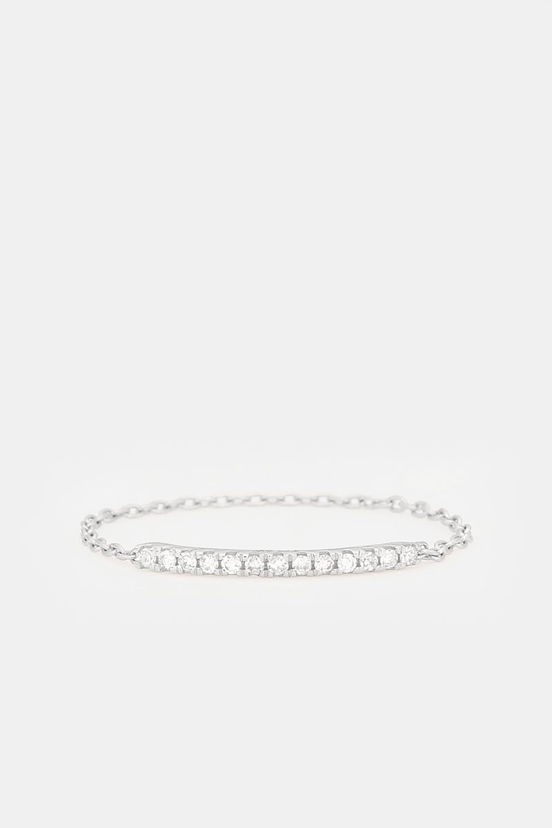 Bague chaînette Barre Scintillante - Or blanc et diamants