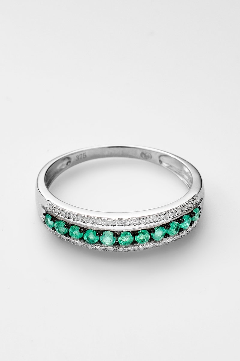 Matière : or blanc 375/1000, diamants 0,08 carat/36 et émeraudes 0,21 carat/18