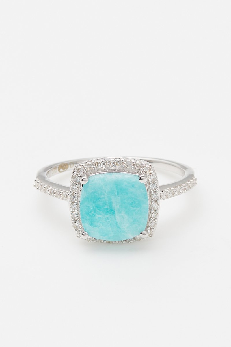 Bague Rio Grande - Or blanc, diamants et amazonite