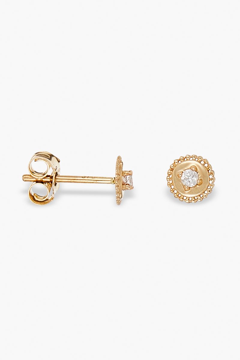 Puces en or jaune sertie d'un diamant.