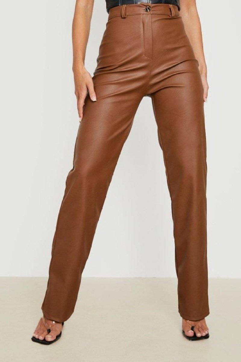 Pantalon droit taille haute - Marron