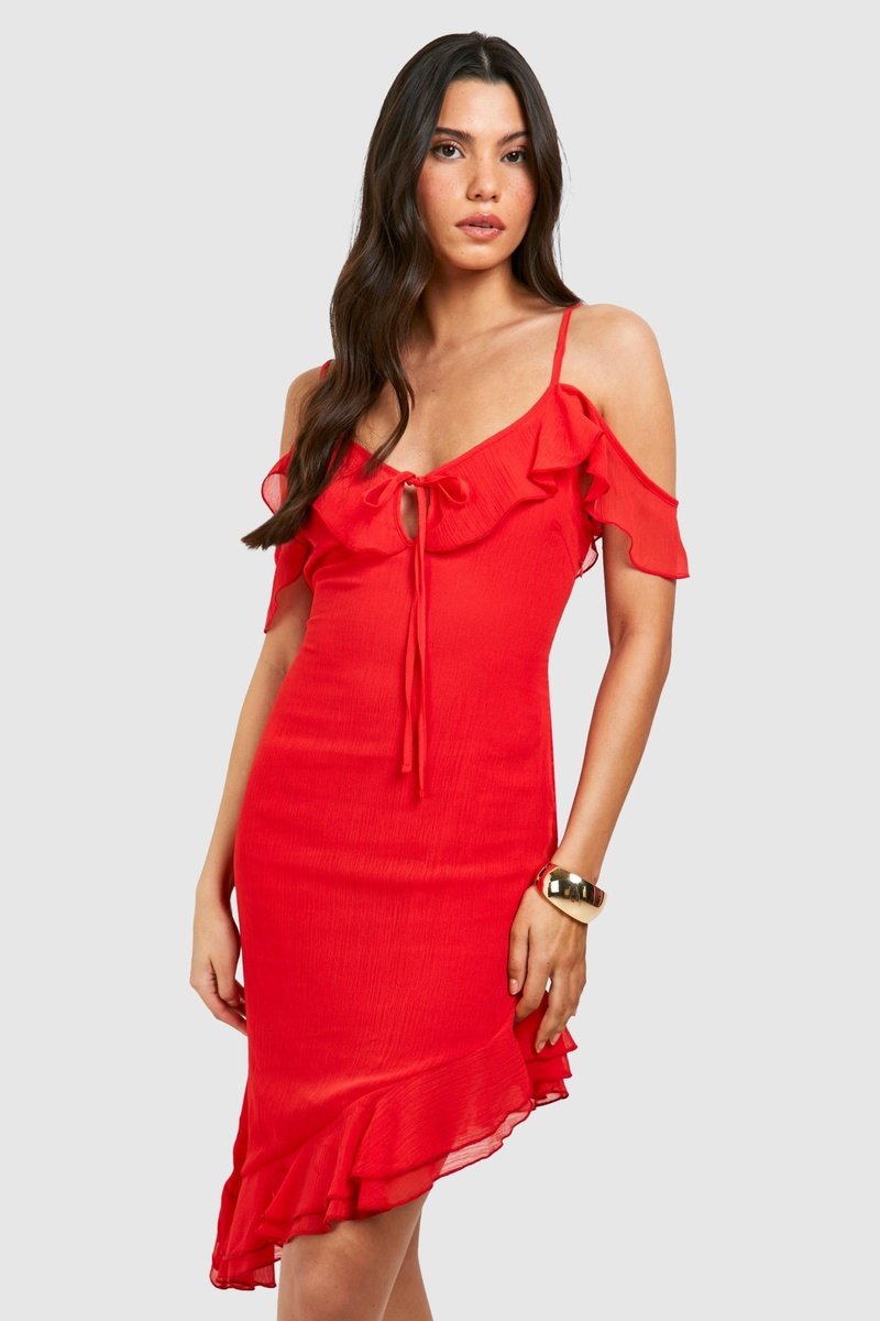 Volants devant, à la base et au dos.