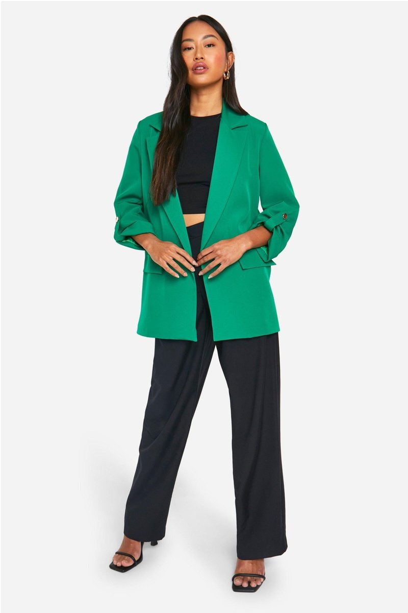 Blazer relaxed à manches longues retroussables par patte boutonnée.