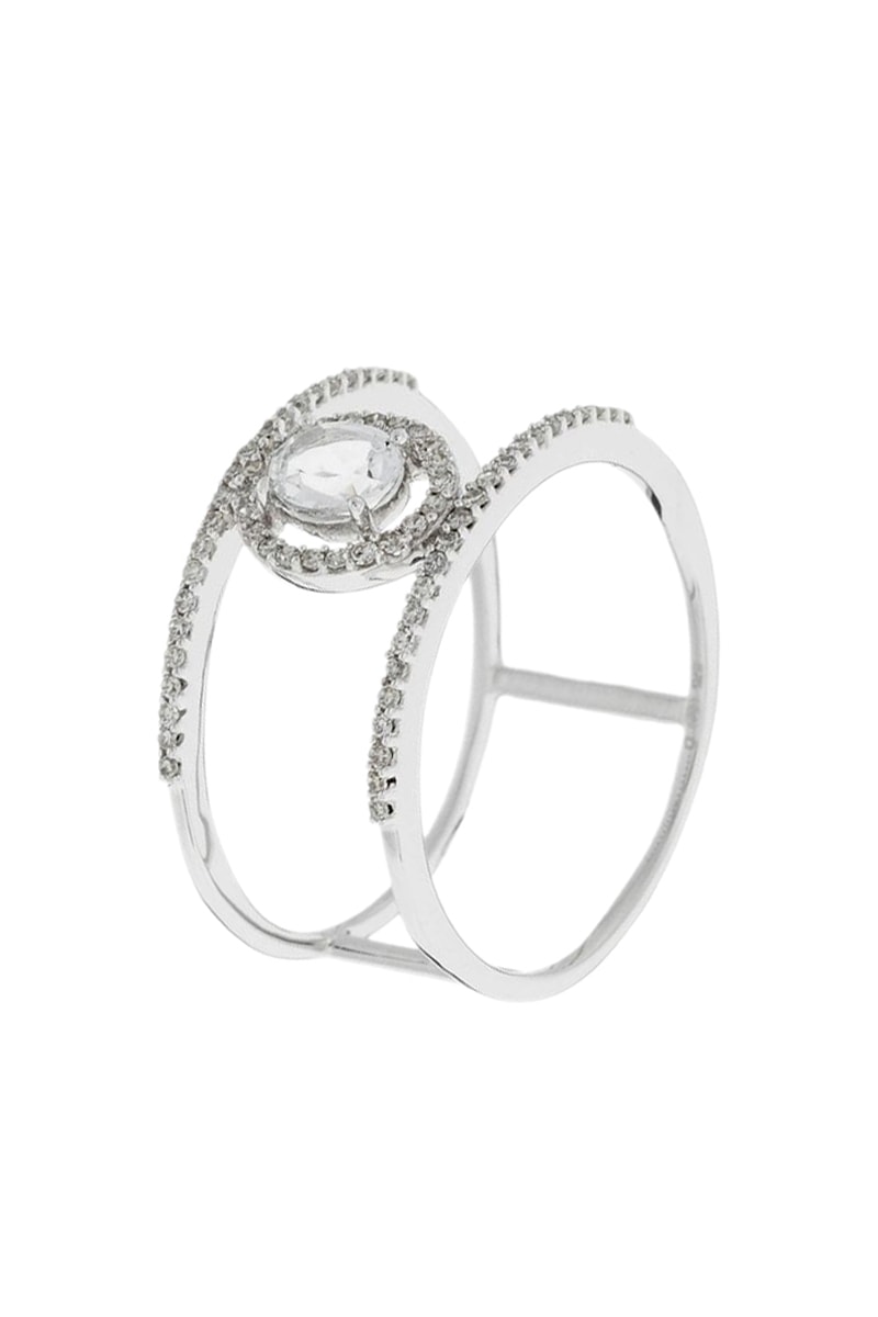 Bague en or blanc sertie de 68 diamants et d’une topaze.