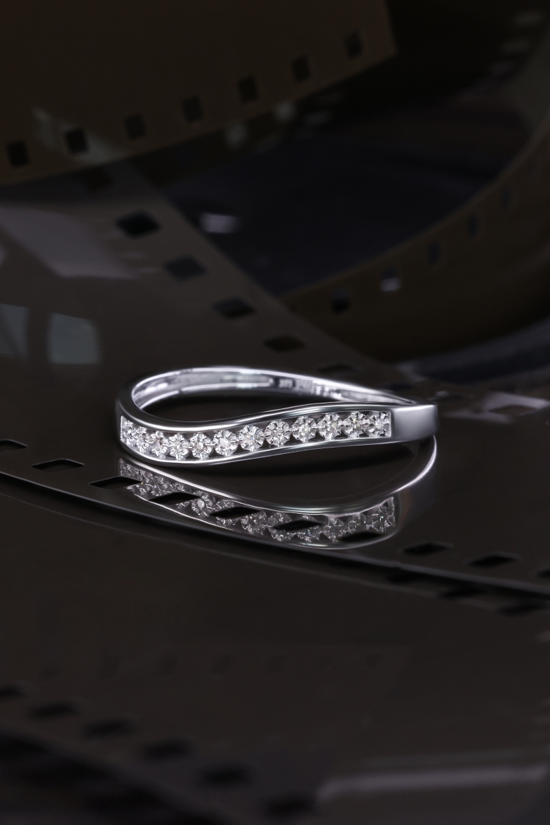 Matière : or blanc 375/1000 et diamants 0,02 carat/12