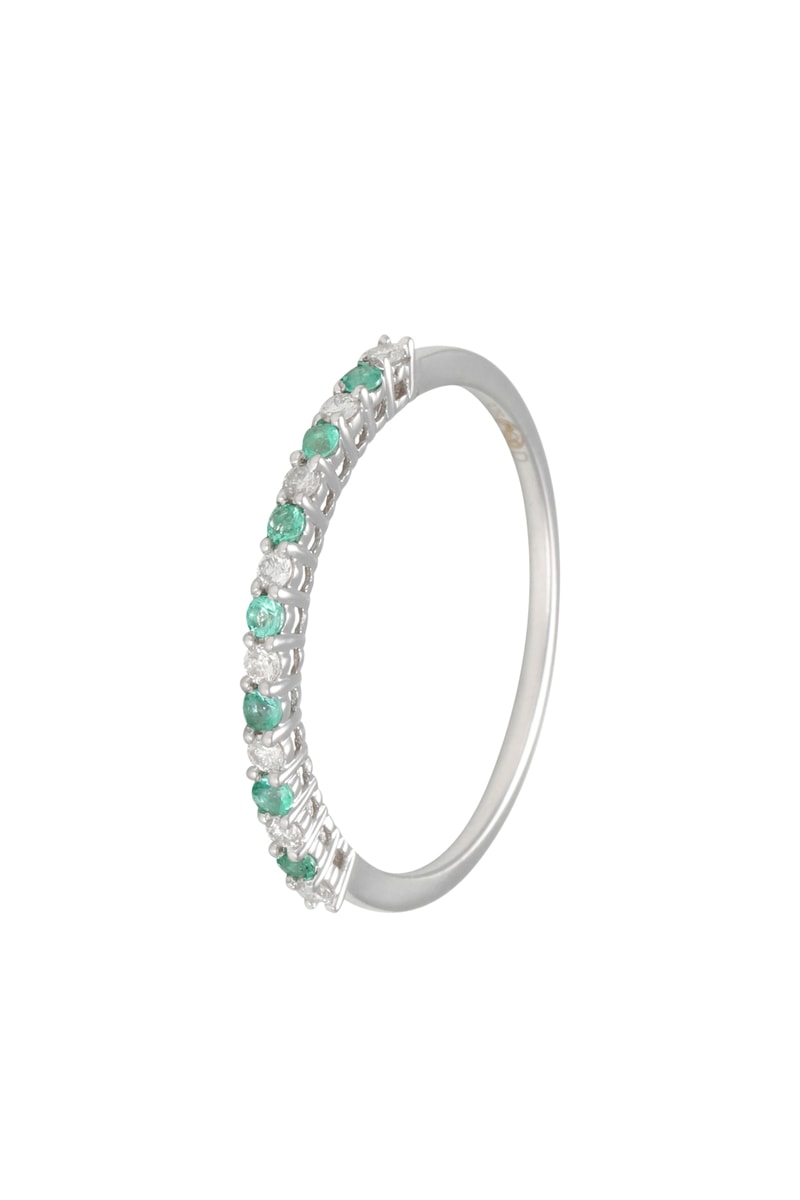 Bague en or blanc sertie de 8 diamants et de 7 émeraudes.