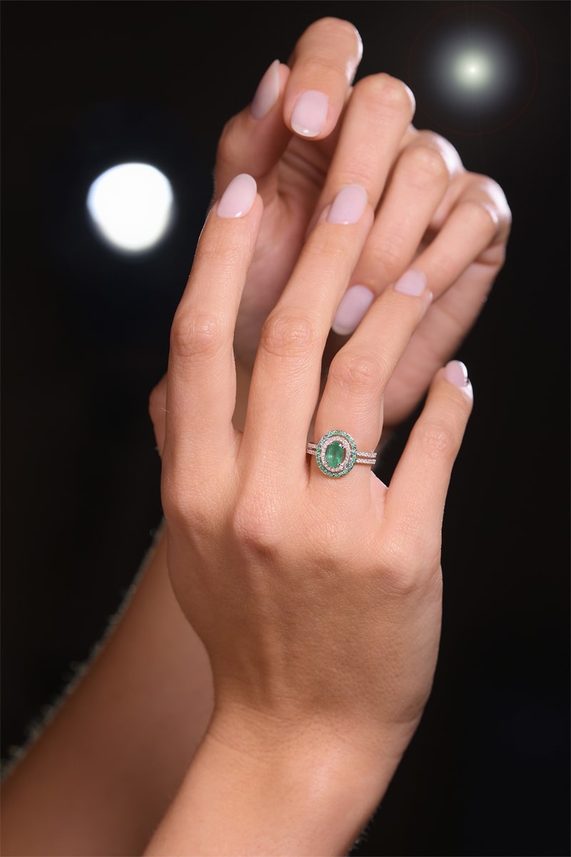 Matière : or blanc 375/1000, diamants 0,25 carat/50 et émeraudes 1,25 carat/29