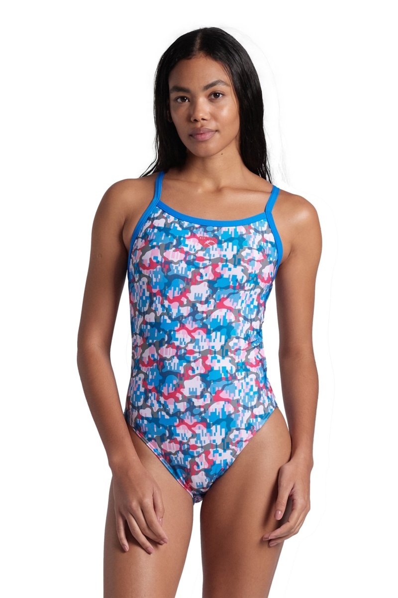 Maillot 1 pièce Multi Camo -Ciel et blanc
