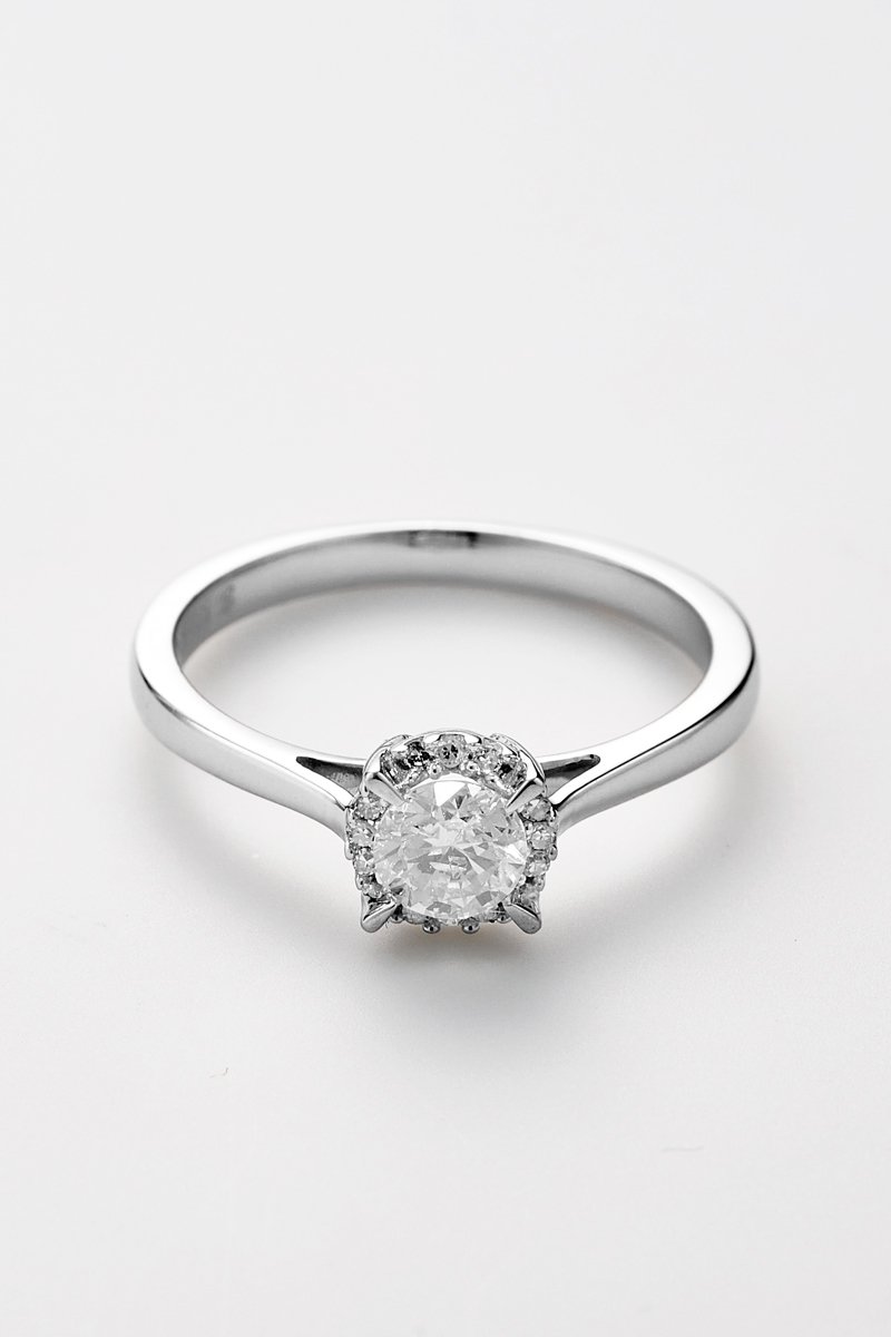 Matière : or blanc 750/1000, solitaire 0,3 carat et diamants 0,03 carat/12