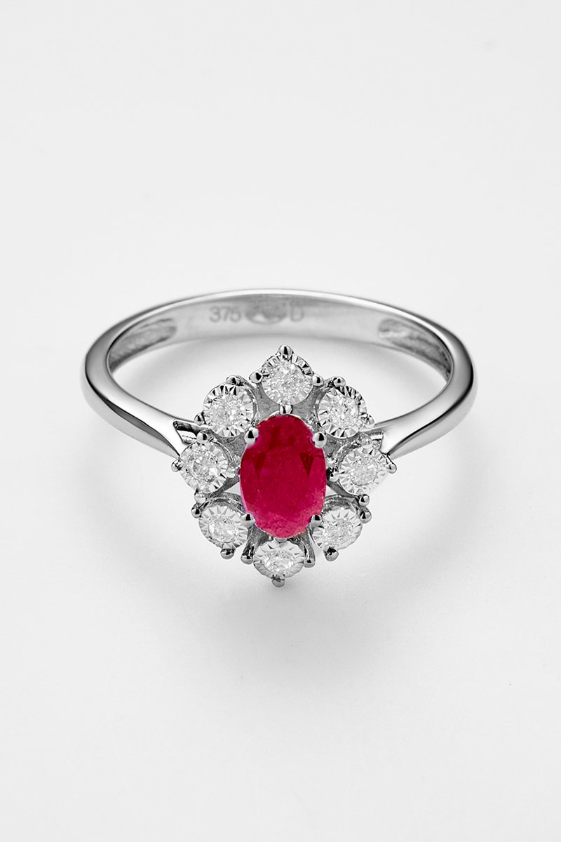 Matière : or blanc 375/1000, diamants 0,06 carat et rubis 0,43 carat