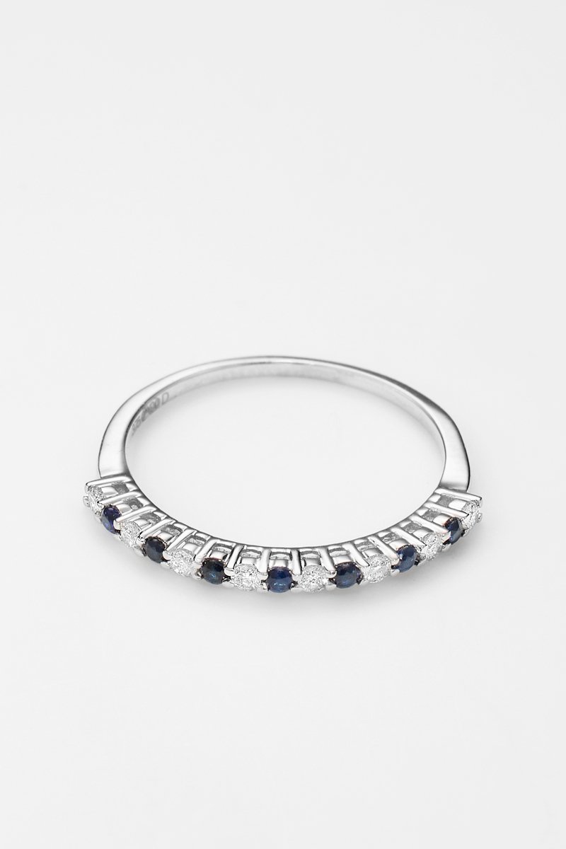 Bague en or blanc sertie de 8 diamants et de 7 saphirs.