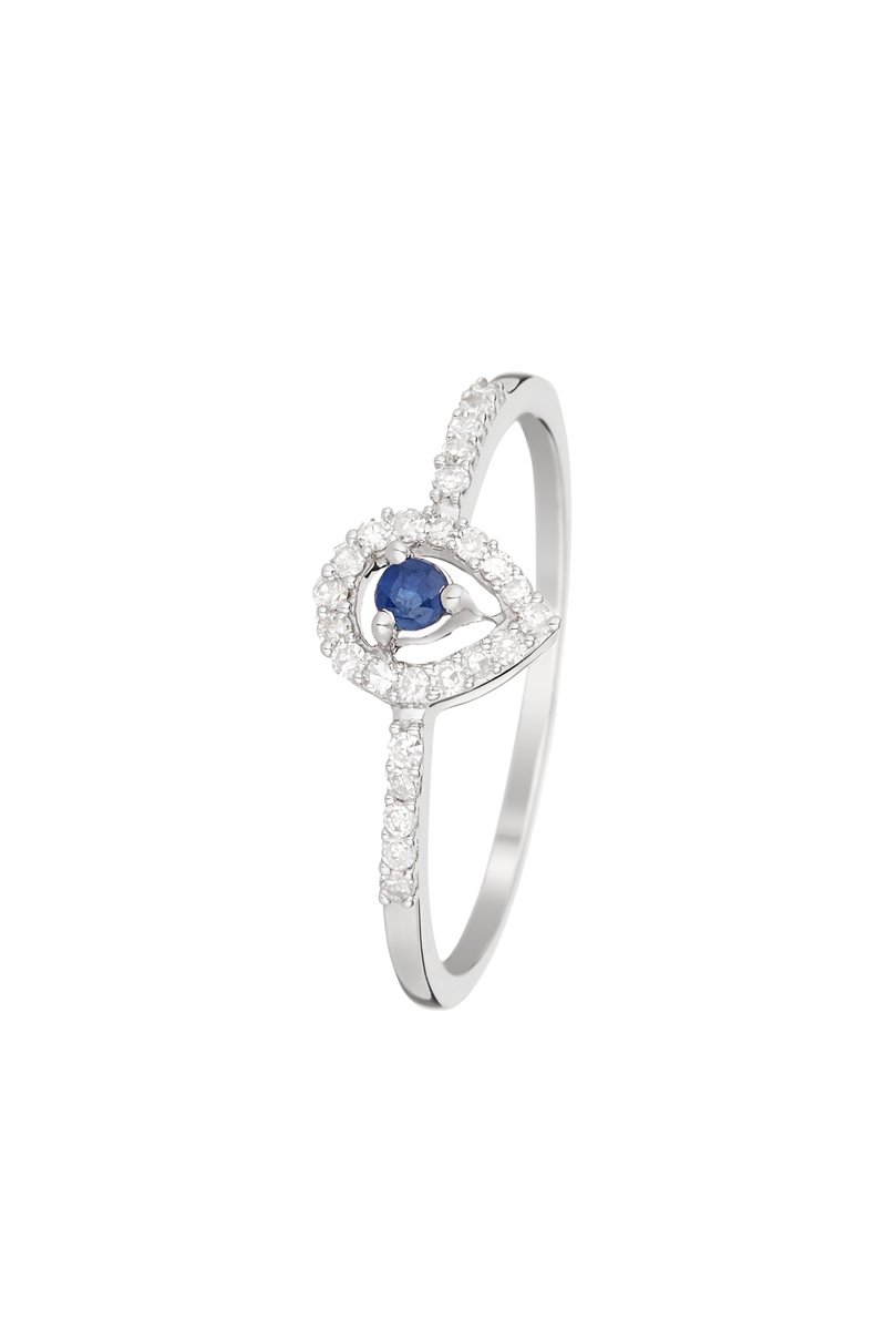Bague Poire de saphir - Or blanc, diamants et saphir