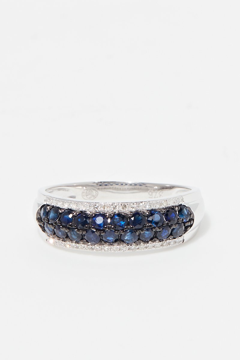 Matière : or blanc 375/1000, diamants 0,08 carat/36 et saphirs 0,83 carat/19