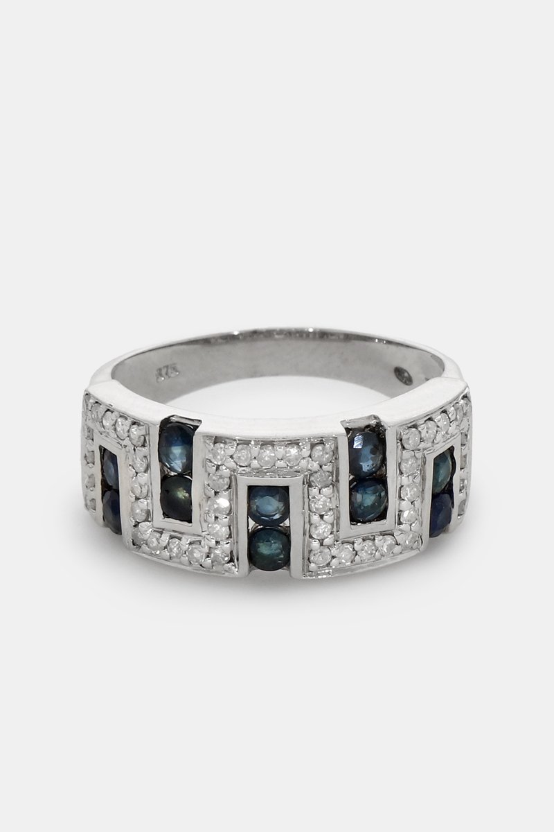 Bague en or blanc sertie de 45 diamants et de 10 saphirs.
