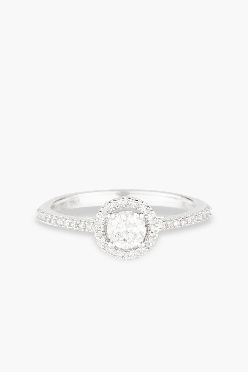Bague en or blanc sertie de 34 diamants dont un solitaire.