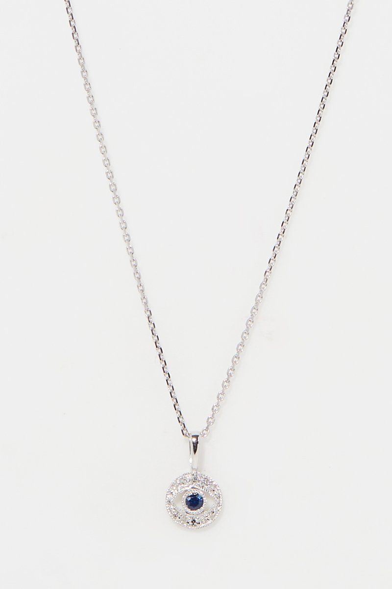 Pendentif - Or blanc, diamants et saphir