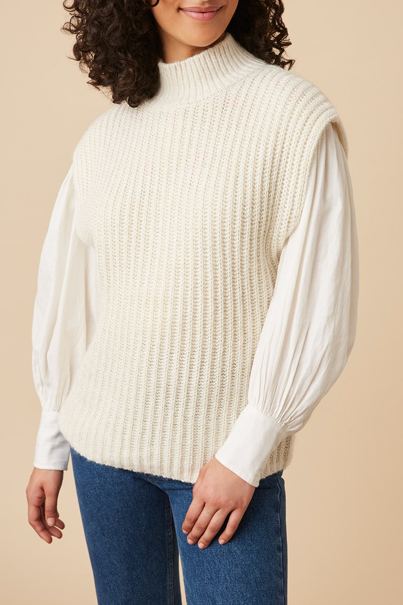 Pull en laine, mohair et alpaga mélangés à manches longues.