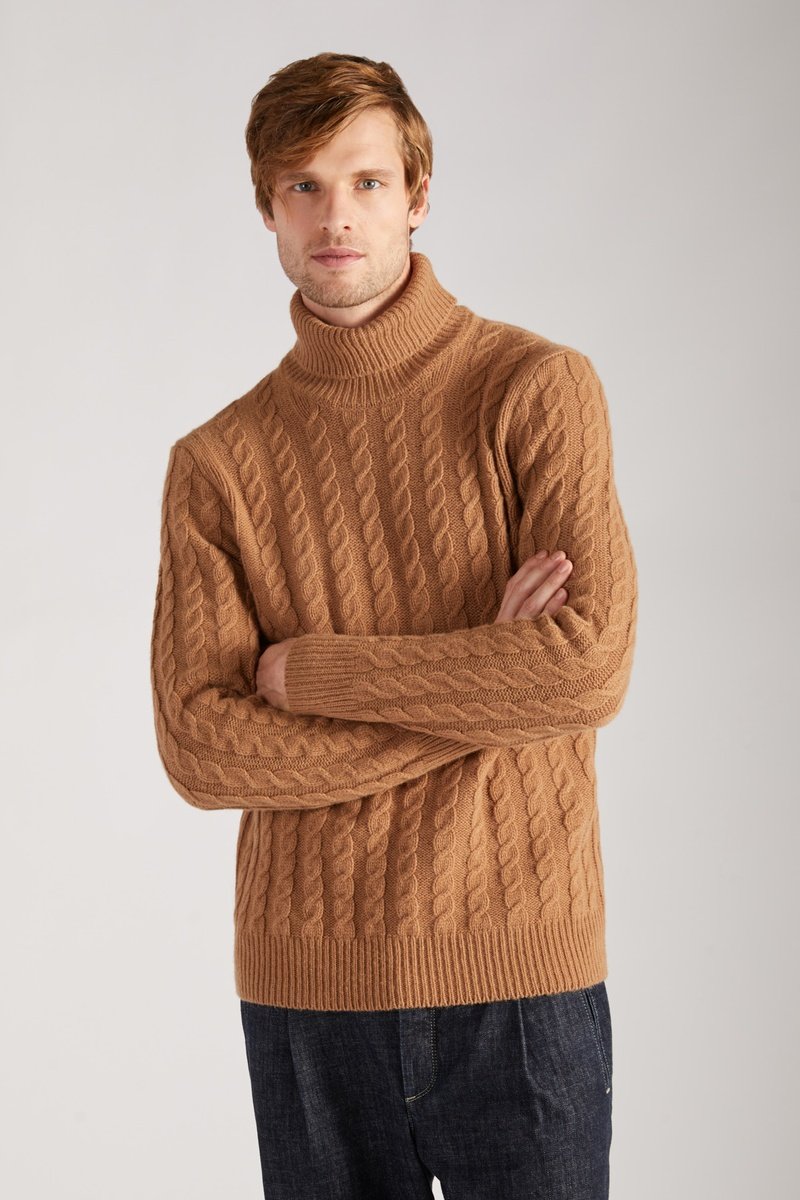 Pull slim en laine vierge et alpaga - Camel - Zanone