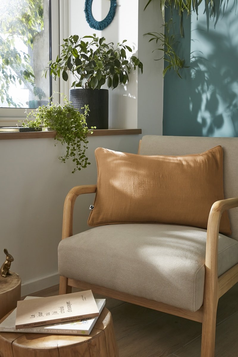 Coussin en gaze de coton Gaïa - Camel - 40 x 60 cm
