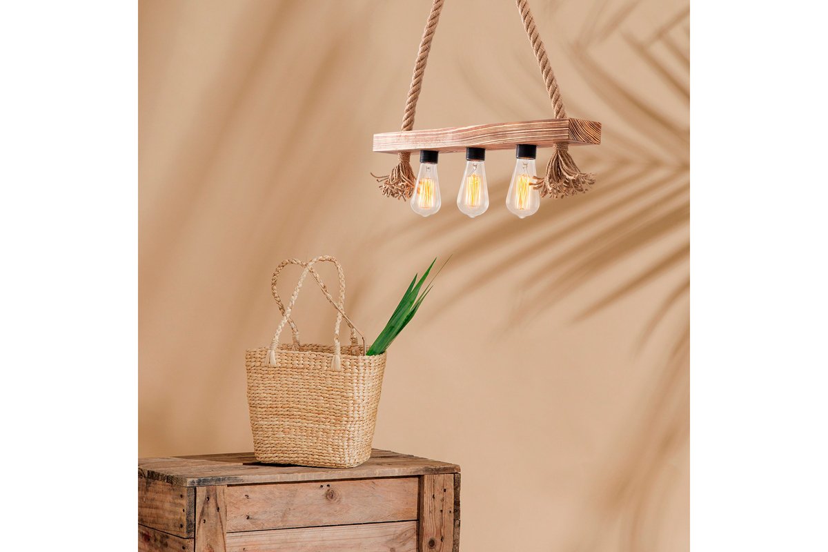 Suspension en bois Erebos - Naturel - 3 x 40 W
