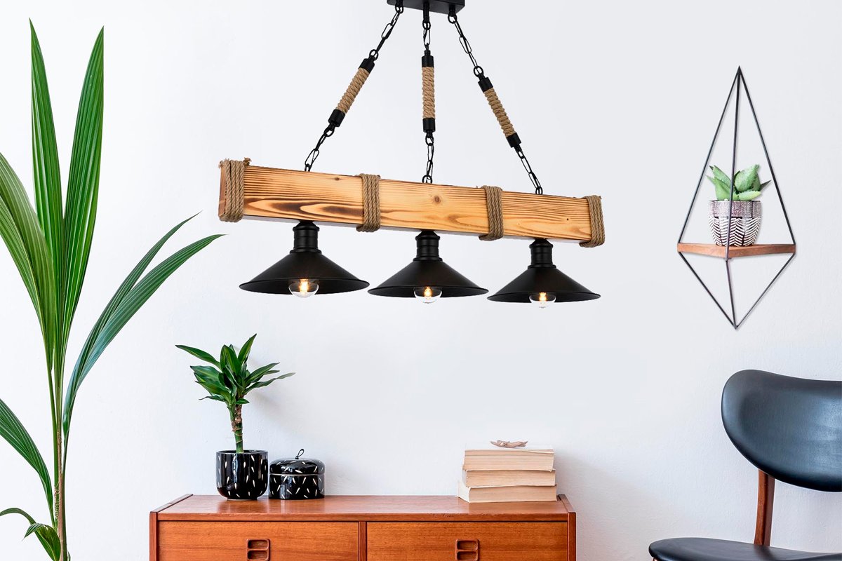 Suspension en bois de charme - Naturel - 3 x 60 W
